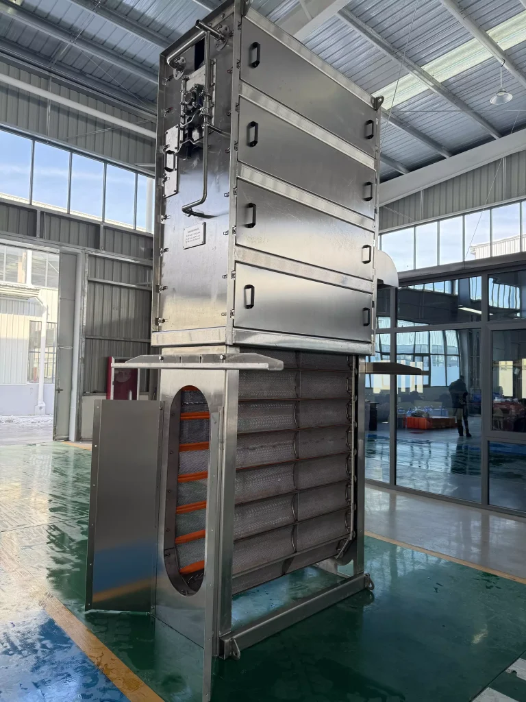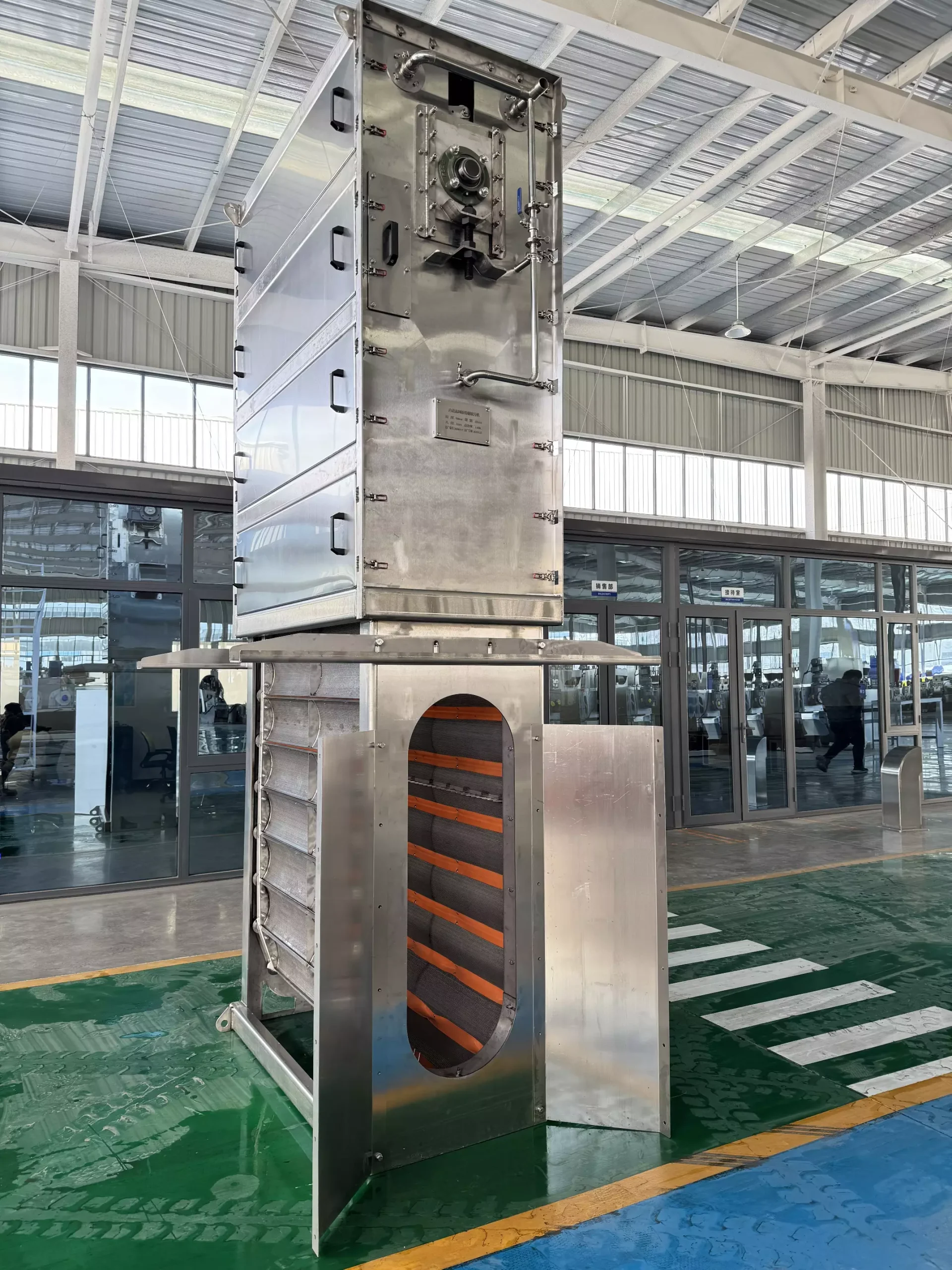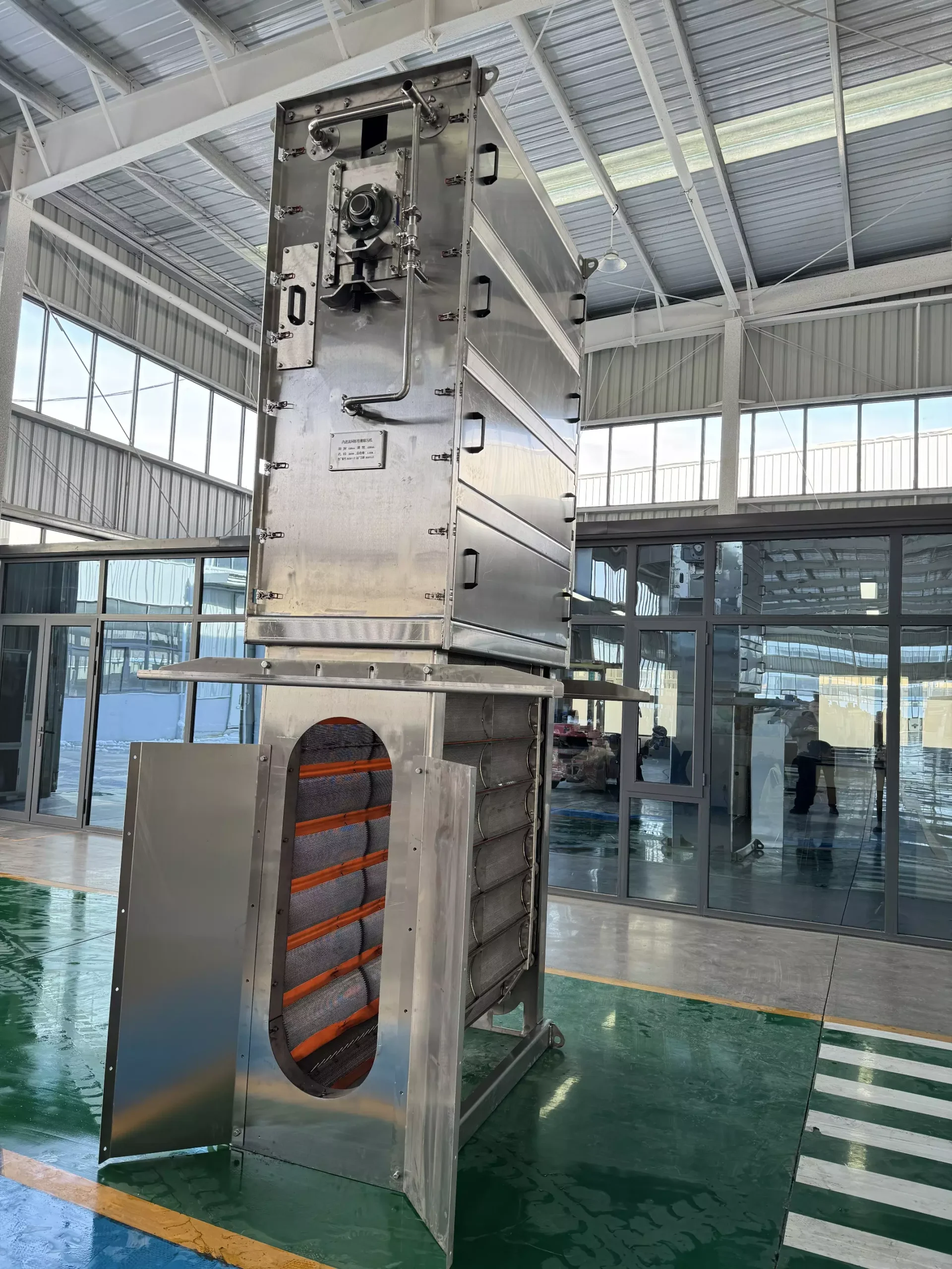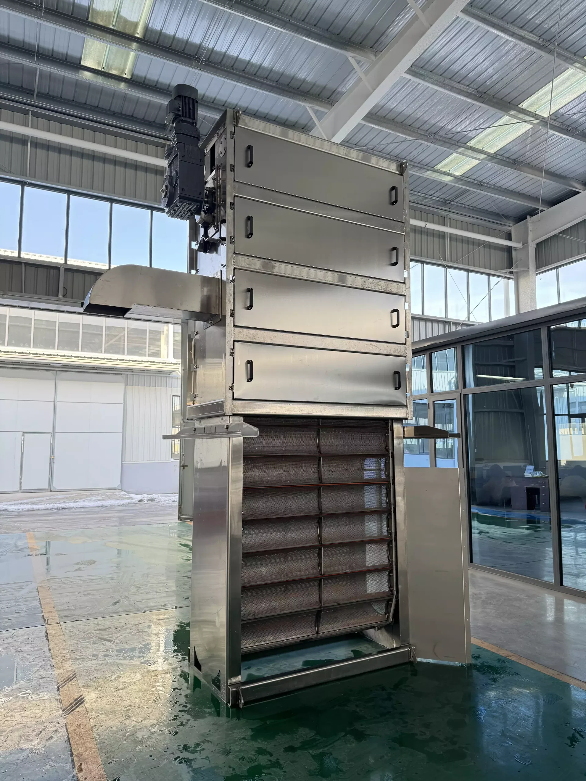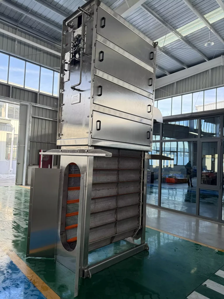 A geared motor drives a sprocket to rotate, which in turn drives the screen to rotate continuously. Wastewater enters the screen through the inlet, is filtered by the screen, and then flows outwards towards the outside of the screen. Debris is trapped on the inner surface of the screen and carried to the top as the screen rotates. The backwashing system washes the outside of the screen, and under the action of the backwash water, the debris is washed into the slag collection tank and flows out of the discharge port along with the backwash water.