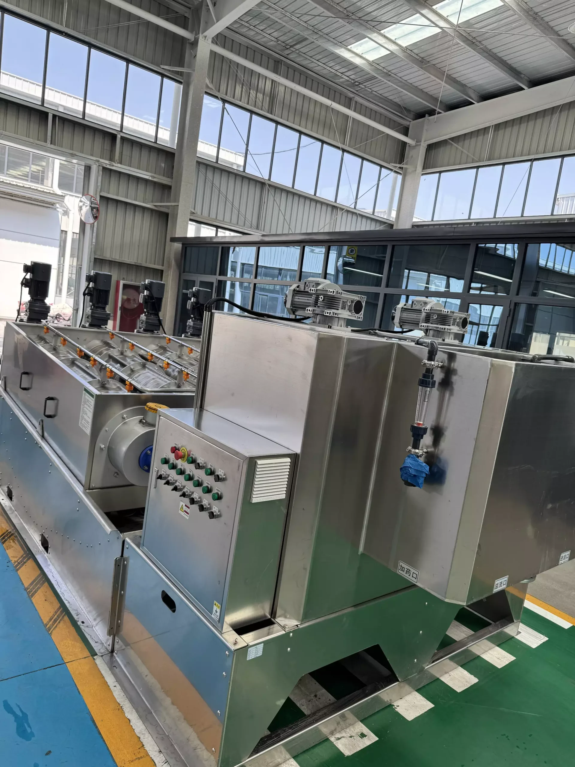 The metered sludge is thoroughly mixed with injected high-molecular-weight flocculant in the flocculation mixing tank to form good flocs.