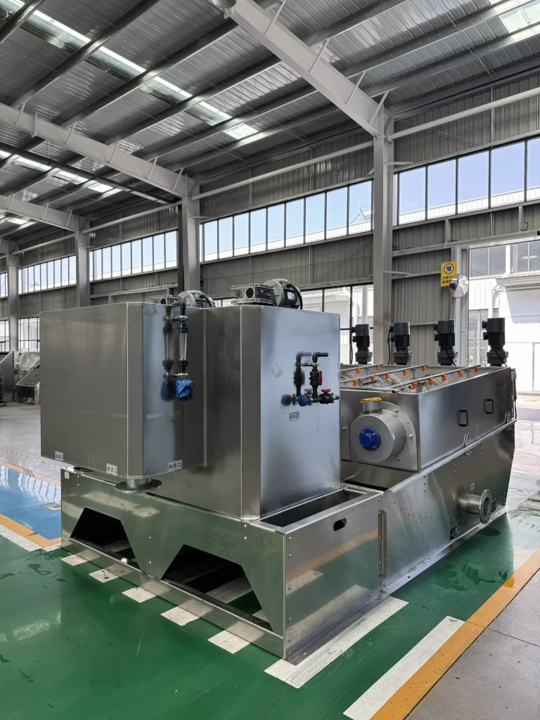 - The electrical control cabinet, flocculation mixing tank, and dewatering unit are integrated, reducing floor space and simplifying installation.