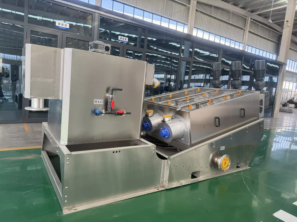 After entering the dewatering unit through the sludge inlet, the sludge undergoes gravity concentration in the initial thickening section, with most of the liquid being discharged. In the dewatering section, the continuous increase in internal pressure ensures thorough dewatering. “The dewatering body of the sludge thickener does not include a dewatering section.